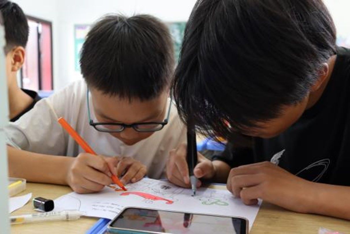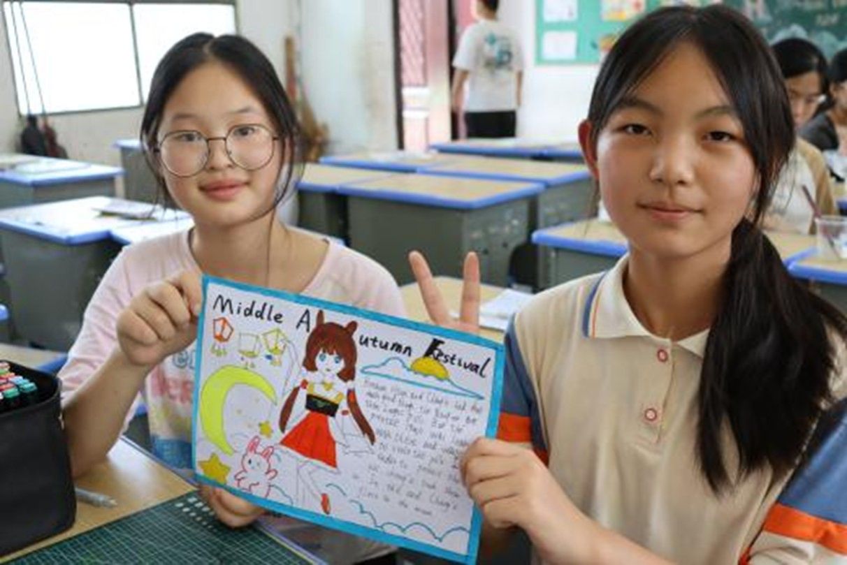 活动由实践团成员张罗兮、林舒钰、王梓橦、胡华润和汪君奕共同组织与实施。活动中,实践团成员首先以双语形式,结合多媒体素材,为同学们讲述中国传统故事、非遗文化和当代发展成就,内容包括神话传说嫦娥奔月、春节的习俗、大国重器等。随后,实践团成员指导学生进行手抄报设计,具体指导内容包括版面设计构思、英文内容翻译与书写、图案绘制技巧等。学生们在指导下,围绕既定主题,积极投入创作,完成了各自的手抄报作品。活动结束后,实践团收集了学生们对此次手抄报创作活动的参与感受和想法反馈。