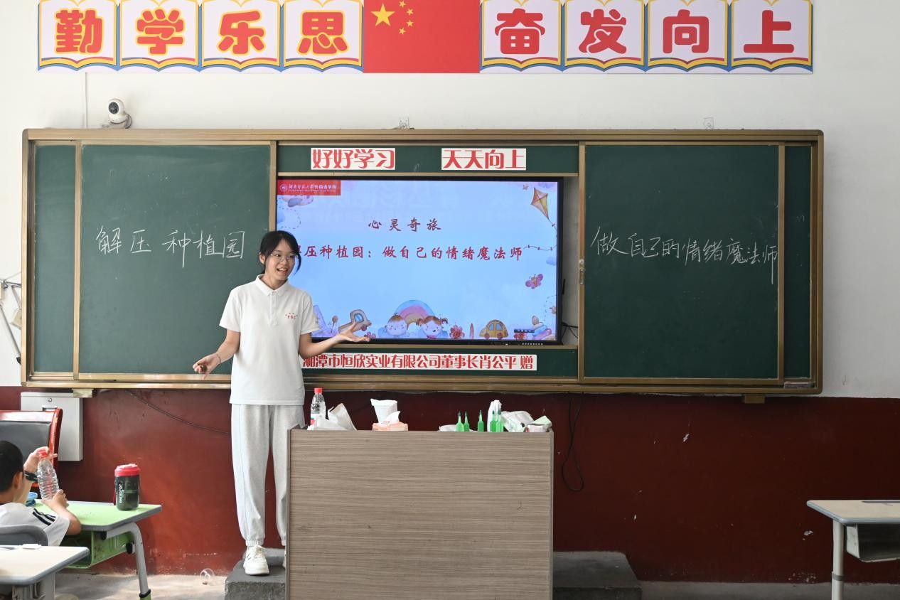 随后,实践团开展"解压种植园"主题心理辅导活动。实践团成员周昱希围绕"心灵奇旅"主题,带领孩子们完成水培水仙花的种植流程,并讲解后续养护要点。活动创新性地将心理知识融入劳动过程,让学生在种植花卉的同时学习到疏解心理压力的方法。