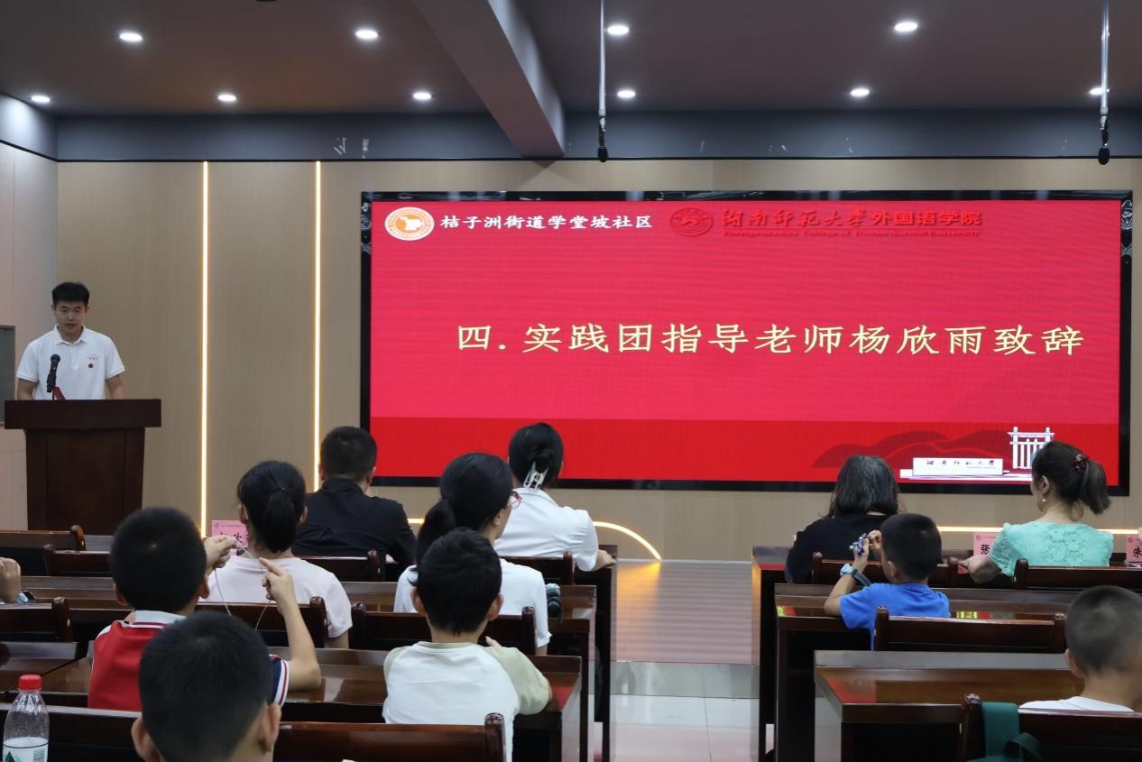 王珊珊发言致辞,回顾了社区与学院在志愿服务、青少年教育等方面的合作成果,对实践团的到来表示热烈欢迎,并寄语社区青少年珍惜学习机会,在实践中收获成长。她希望通过此次暑期实践活动,激励实践团成员践行责任担当,为社区青少年创造独特成长体验,让社区的土壤“长出希望的秧苗”。