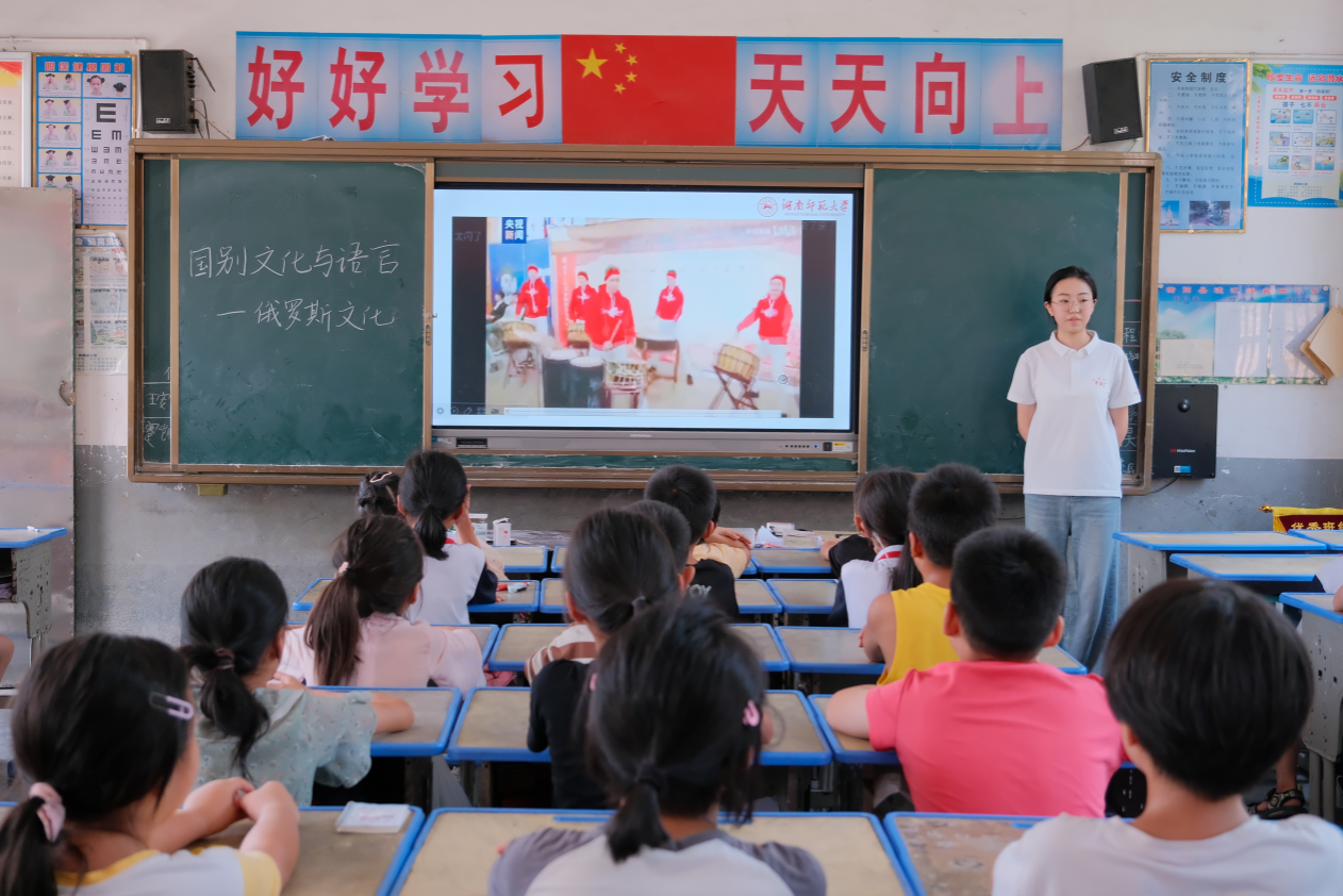 (通讯员 乔清泉 刘奕君 许佳怡 李祖熠)7月17日上午,澳门pg官网“知行沃乡土,语露润盐田”暑期社会实践团于衡阳县盐田小学开设俄罗斯国别文化课程,旨在通过系统讲解俄罗斯文化,帮助学生拓宽国际视野,增进对异国文化的了解。