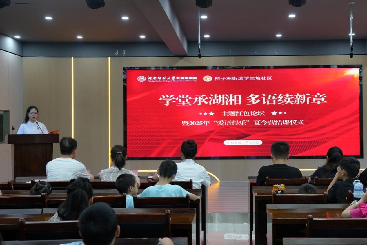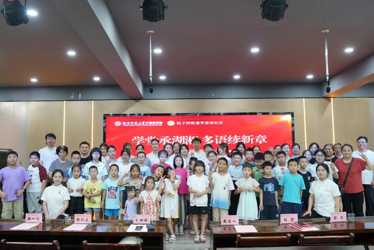 (通讯员 戴霁斌 周煜浈 周青宜 曹亦桉)7月25日上午,澳门pg官网赴长沙市学堂坡社区暑期社会实践团(以下简称“实践团”)与学堂坡社区党总支携手举办“学堂承湖湘,多语续新章”红色论坛暨2025“爱语得乐”夏令营结课仪式。院团委负责人、实践团指导老师戴霁斌,学堂坡社区党支部书记杨霞,夏令营班主任彭杰、朱新灿、章椰林、张秋良、温加林出席论坛活动。