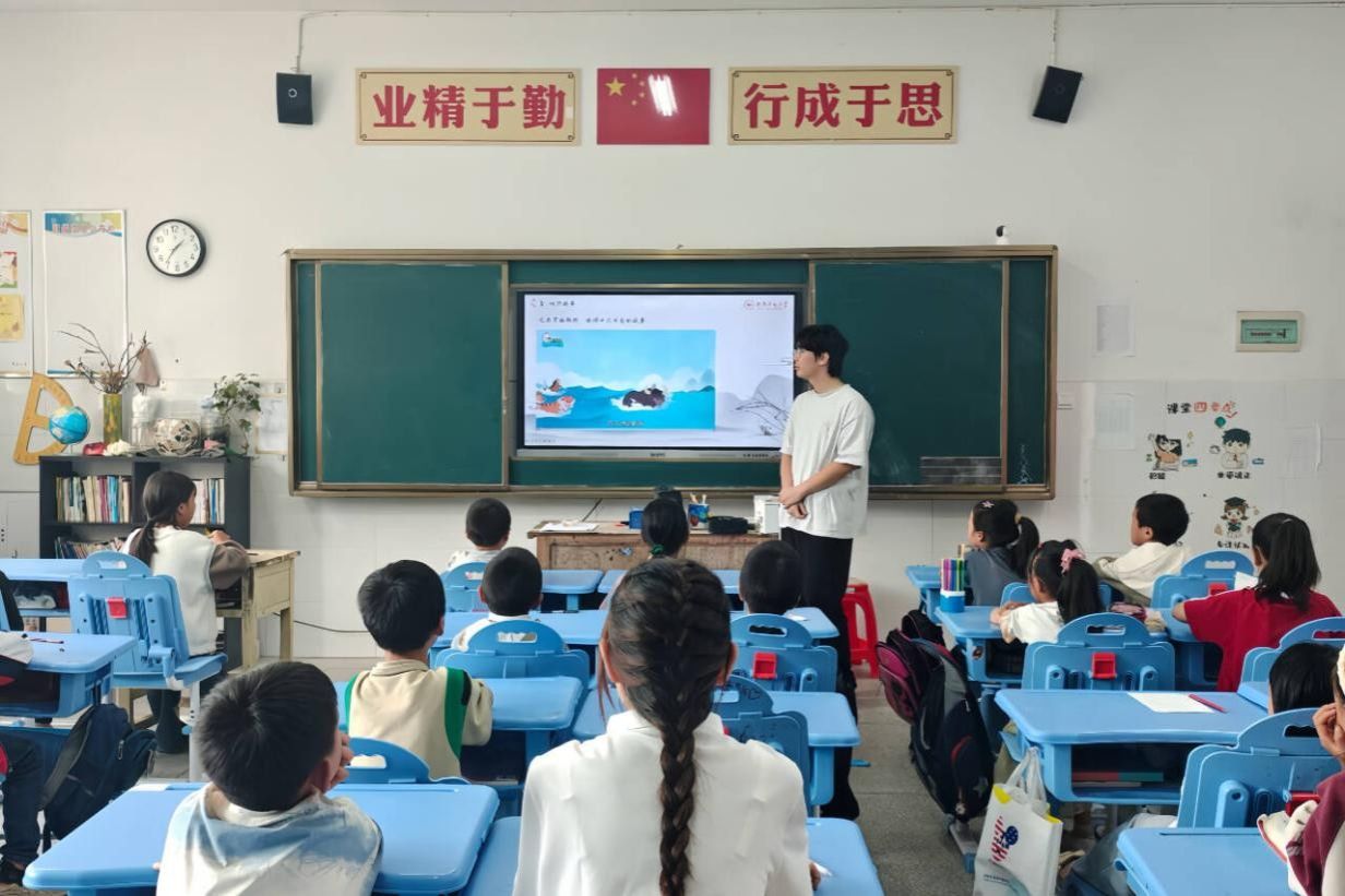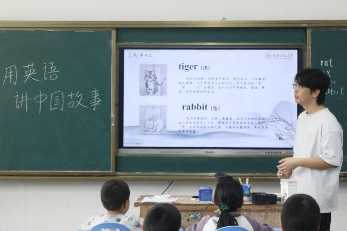 (通讯员 陈学谦 李伶 陈哲睿)为激发实践地学生英语学习兴趣并加深对优秀传统文化的理解,7月27日上午,澳门pg官网“瑶乡语韵,草原余音”暑期社会实践团(以下简称“实践团”)在邵阳市隆回县虎形山瑶族乡草原学校开展“用英语讲中国故事”课堂。实践团成员戴逢琨担任主讲人,实践团其他成员及当地二十余名学生报名参加。