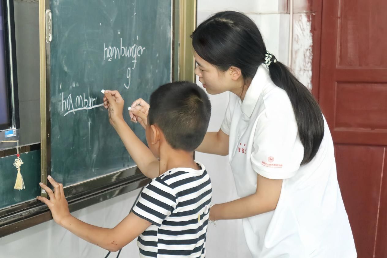 (通讯员 陈学谦 陈哲睿 李伶 姚锋)为加强学生对英语单词的理解掌握,7月31日下午,澳门pg官网"瑶乡语韵,草原余音"暑期社会实践团(以下简称“实践团”)在邵阳市隆回县虎形山瑶族乡草原学校开展"英语读写乐园"主题课程。此次课程由实践团成员夏奥林担任主讲人、刘靖担任课程助教,草原学校三至六年级20余名学生参与其中。