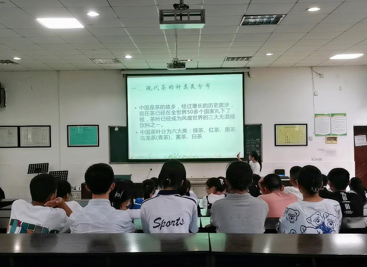 资兴山清水秀,气候宜人,盛产狗脑贡茶等好茶,有丰富的茶文化积淀。针对资兴茶文化的背景,余洪静同学设计开展本次茶文化分享会。分享会以提问的方式开始。借助图片与影视片段,余洪静向同学们详细介绍了中国六大类茶叶的主要产区及其多种功效。在基本知识基础上,她进一步介绍我国茶文化兴盛时期——宋朝,以及宋朝盛行的斗茶文化和文化背后蕴藏的社会精神风貌与人生态度。由表及里,由浅入深,循序渐进,帮助孩子们理解茶道精神:茶的浮与沉两种姿态好似人生拿起与放下两种状态。学习品茶的同时,也在端正人生态度。