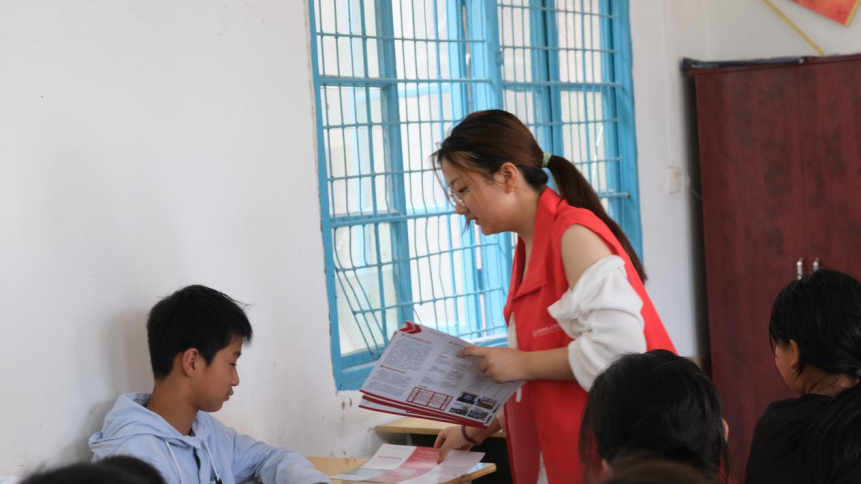 为贯彻落实高校资助政策,响应乡村教育振兴政策,实践团举行了澳门pg官方电子平台资助政策宣讲会。张帅和团队成员们对东岳观镇中学学生发放澳门pg官方电子平台学生资助宣传手册。
