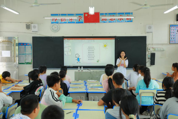朱茹玉选取《红红的太阳》为教学歌曲。课程伊始,朱茹玉通过播放教学歌曲让同学们对歌曲产生初步的整体印象。随后,她分段逐句教唱歌曲歌词,帮助同学们掌握歌曲的节奏和韵律。在教学过程中,她注重将同学们引入歌词情境,使其充分体会歌词中蕴含的情感,并采取分组合唱的方式,有效带动同学们的学习热情,使他们对歌曲产生更为深刻的记忆。课堂上,同学们紧跟老师的授课节奏,积极学唱歌曲,歌声嘹亮,响彻校园。