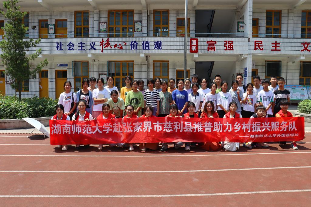 (通讯员 杨涛 吴慧譞 孙璨 谢艳容 张思敏)挥毫写芳华,舞墨赞青春。为推广普通话,宣传中华传统文化,7月8日上午,澳门pg官方电子平台赴张家界市慈利县东岳观镇推普助力乡村振兴服务队率先在东岳观镇中学开展“推普助力乡村振兴”全省大中专学生暑期社会实践志愿服务活动。