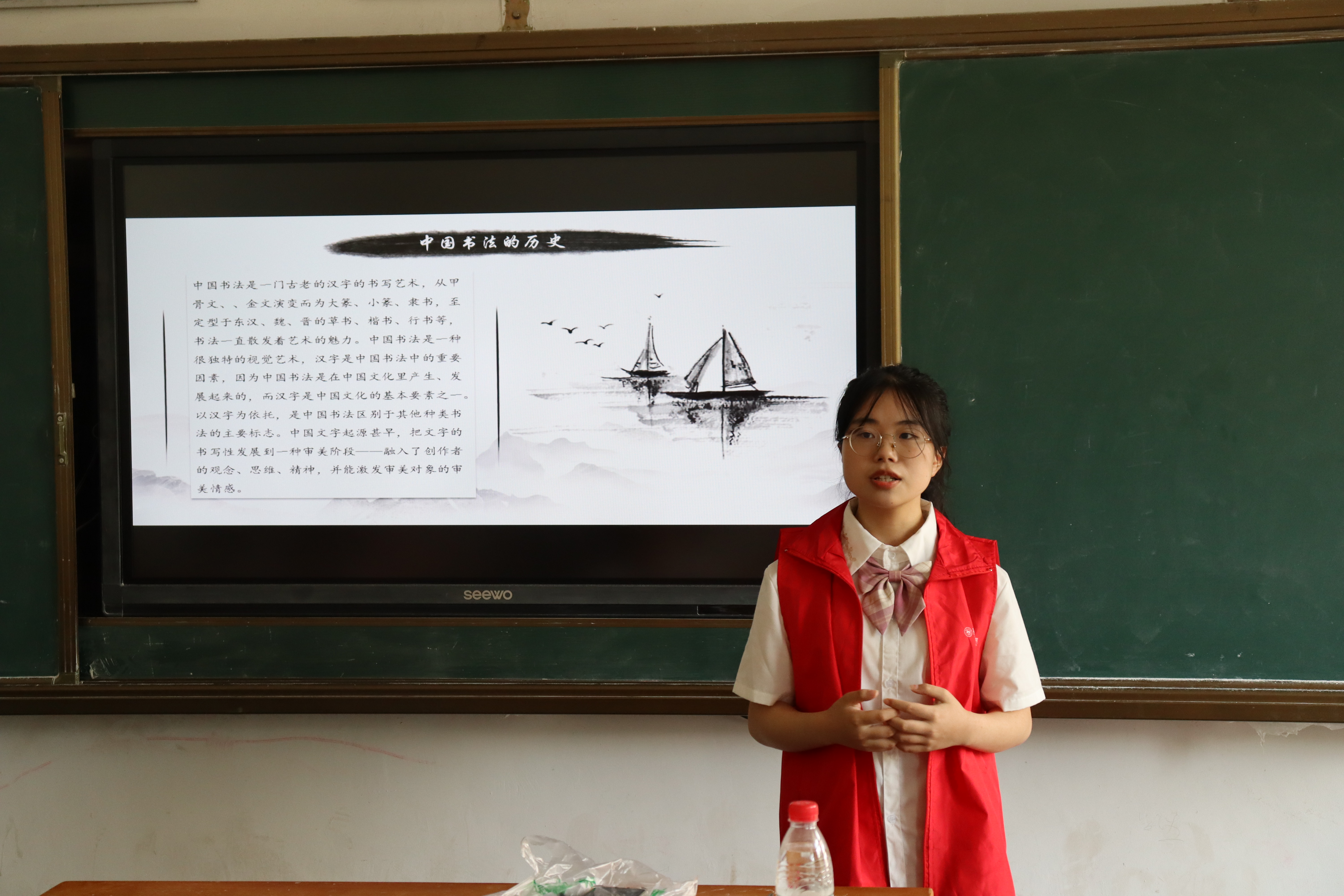 随后服务队举行了书法课教学活动。此次活动由服务队队员王治力负责。