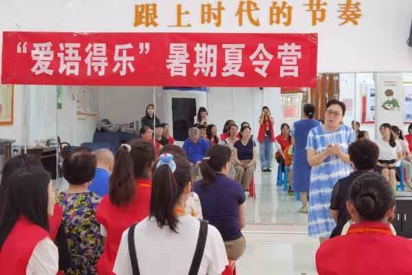 此次暑期夏令营的主题为“爱语得乐”,活动开展流程紧扣“爱”与“得”,“语”和“乐”。开营仪式上,余海艳代表社区对暑期实践团成员的到来表示欢迎与支持。她表示,无论是大学生还是小学生,都是祖国的花朵。社区将会全力配合实践团开展实践活动,为队员开放基础设施、着重后勤保障。同时也对参加此次夏令营的孩子们提出了要求,希望孩子们卯足劲头,认真学习,珍惜志愿者的劳动成果,希望志愿者和孩子们互相关爱,教学相长,各有所得。