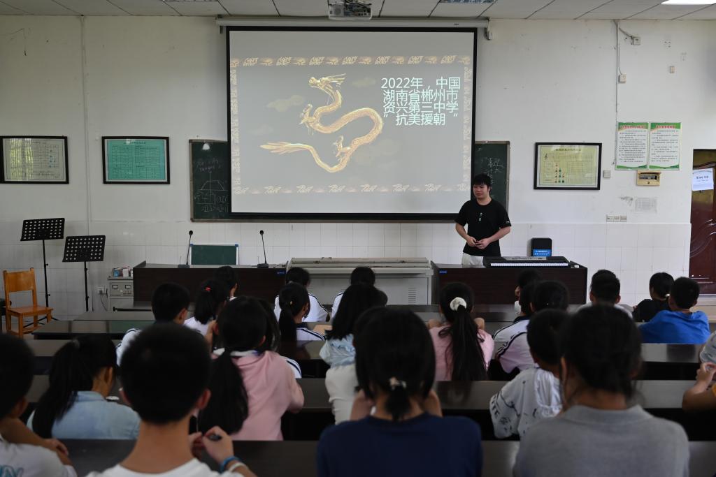 (通讯员 谢璐怡 龚佳倩 邓涛涛 张旭辉)7月13日下午,澳门pg官网赴资兴市第三中学“蒲公英”暑期社会实践团开展了一场别开生面的党史课——抗美援朝模拟战。在团队成员张旭辉的带领下,学生走进抗美援朝战争,“置身实地”感受当时紧张的国际环境,体会中国人民志愿军保家卫国的牺牲精神,增强其民族自信心、民族认同感及爱国之情。
