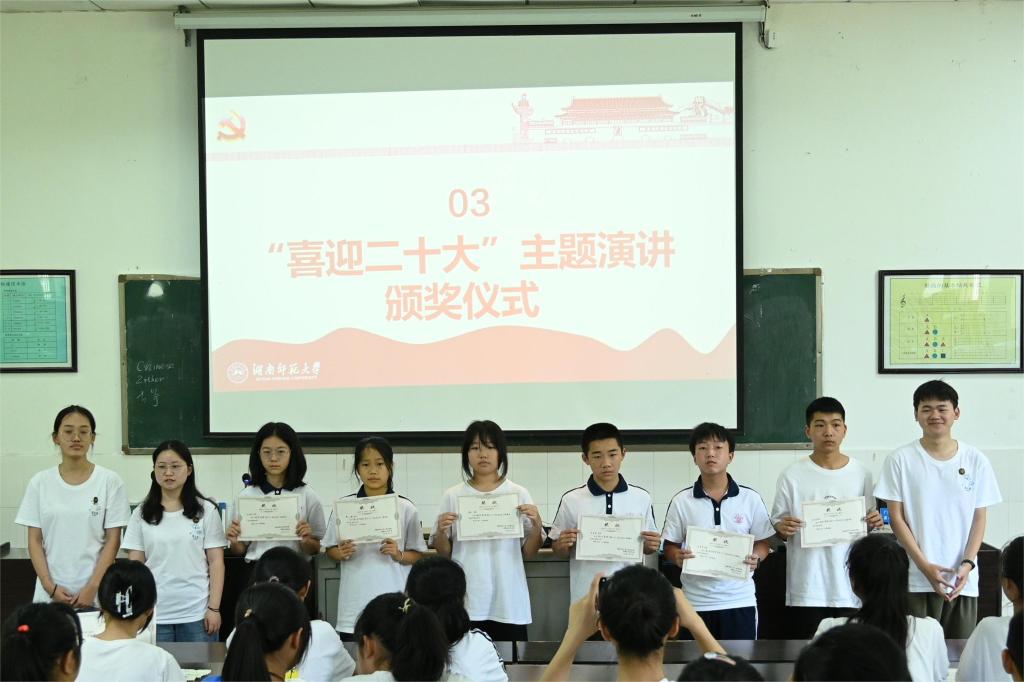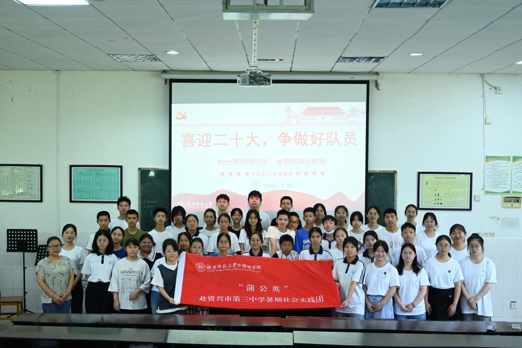 (通讯员 谢璐怡 龚佳倩 刘雨芹)7月15日,为党的二十大胜利营造良好的社会环境,发挥学校的特殊宣传作用,引导学生厚植爱党爱国情感,立志传承红色基因,努力成长为担当民族复兴重任的时代新人,澳门pg官网“蒲公英”暑期社会实践团在资兴市第三中学的协助下开展了学生“喜迎二十大”党史主题演讲活动。