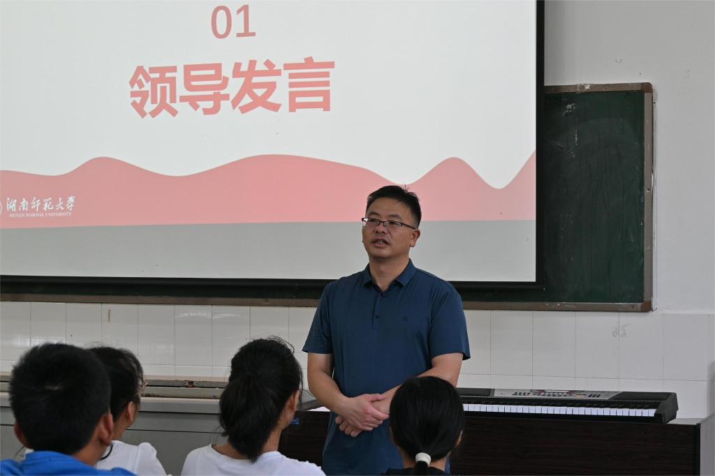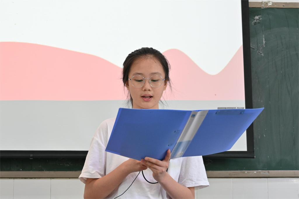 活动开始,实践队队长龚佳倩对团队近期在资兴三中开展的党史主题宣讲成果进行汇报总结,三中校长李盛林对本团队的工作给予了“形式创新,内容充实”的肯定评价,并进一步鞭策三中学子要牢记党的初心使命,弘扬爱国精神,刻苦学习,精进知识,早日成为担当民族复兴大任的时代新人。