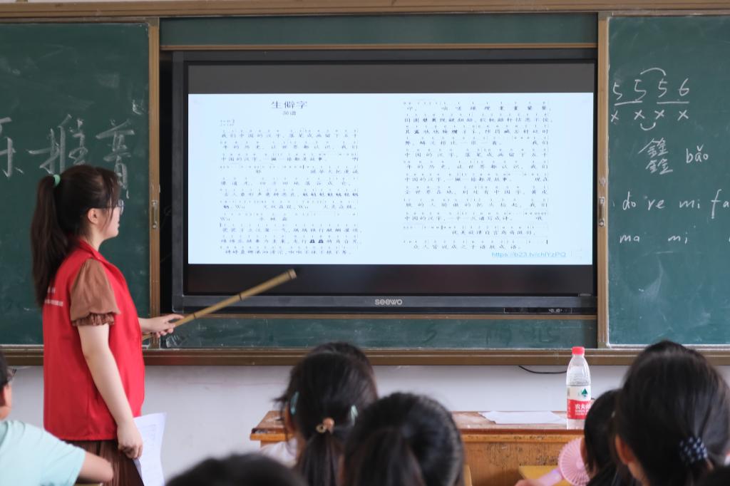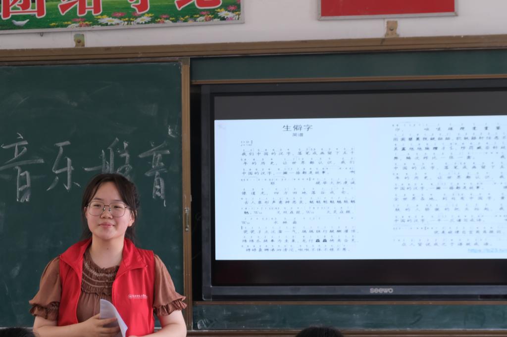(通讯员 孙璨 吴慧譞 杨涛 张思敏 谢艳容)推普筑梦,“音”伴而行。歌唱是一门语言和音乐相融合的艺术,语言是歌唱的基础,而歌唱是语言音乐化的表现,为进一步增强学生们讲普通话的参与意识,营造朝气蓬勃、积极向上的校园氛围,7月14日上午,澳门pg官方电子平台赴张家界市慈利县东岳观镇推普助力乡村振兴服务队将普通话推广融入音乐,开展了音乐推普活动。此次活动由张瀚文负责。