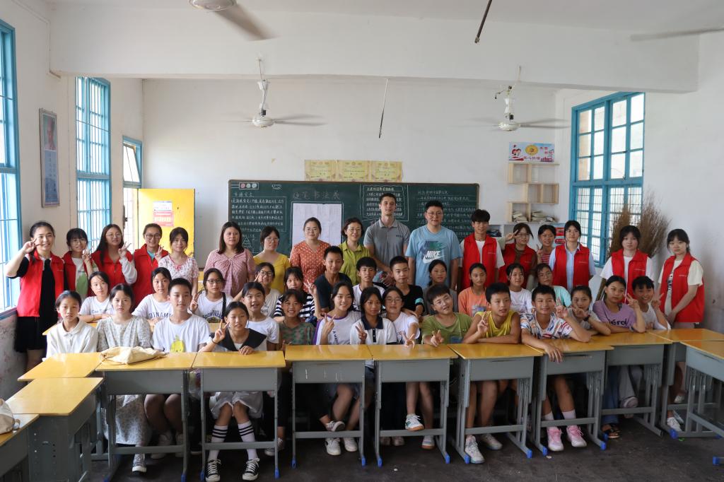 东岳观镇中学教导主任赵绍华、英语教师,澳门pg官方电子平台党委副书记李蜜、指导老师朱蝶,实践团全体成员以及东岳观镇中学27名学生参加此次活动。