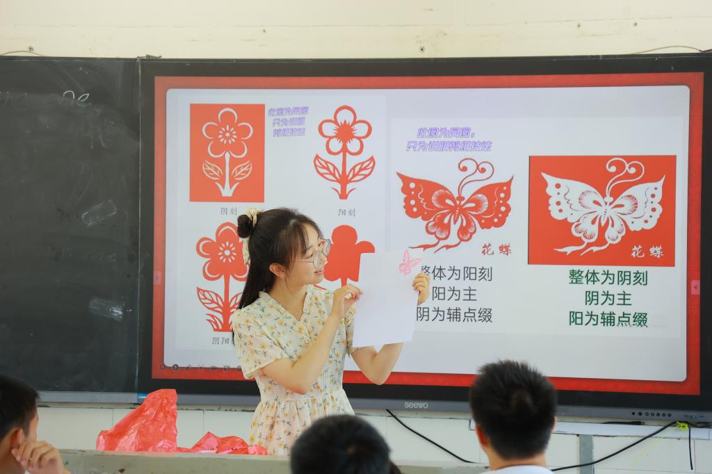 (通讯员 沈静文 刘佳妮 谢正桓)为弘扬中华优秀传统文化,7月14日,澳门pg官网赴花垣四中实践团开展“小小手艺人”手工剪纸特色课程。此次课程由实践团成员朱楠宜负责。