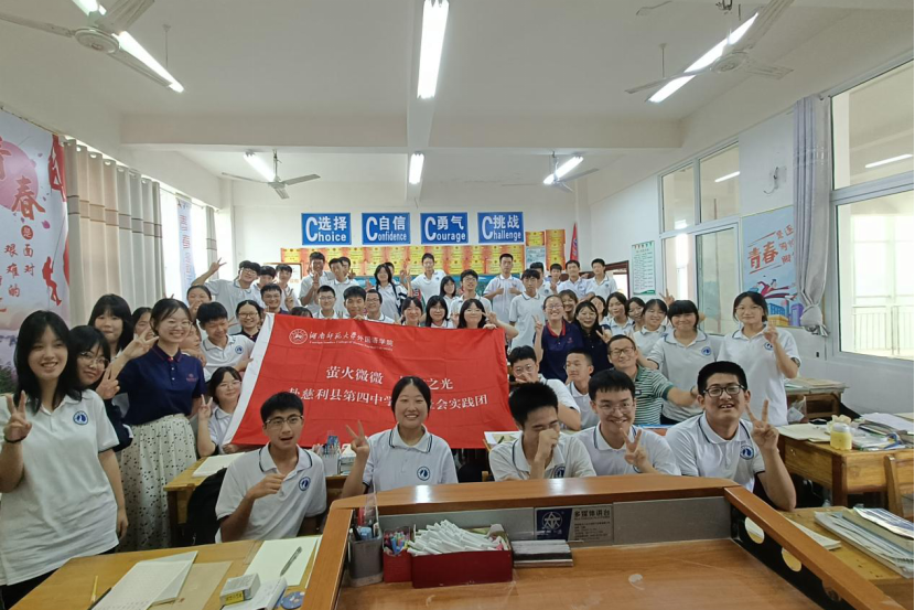 (通讯员 夏文媛 王静静)为进一步总结暑期社会实践活动,完善实践成果与不足,提升实践团综合能力与影响力。7月21日上午,澳门pg官网赴慈利县第四中学暑期社会实践团活动结营仪式在慈利四中举行。在为期十天的实践后,实践团成员与同学们深入交流经验,与当地的校长分享感悟收获,慈利四中副校长杜友初、实践团全体成员,高一、高二全体学生参与此次结营仪式。